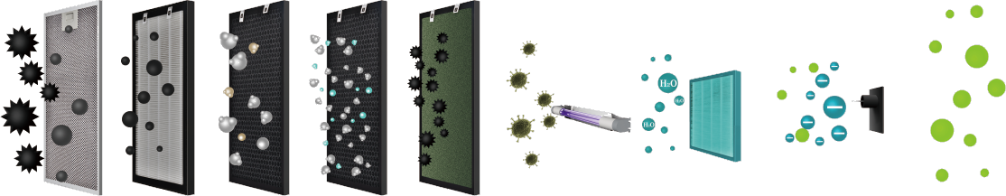 | 净化方式 | 3重滤网 8级净化 初效滤网、HEPA滤网、活性炭滤网 分子筛吸附层、光触媒过滤层 紫外线杀菌过滤层、负离子过滤层 微生物净味活性菌 |